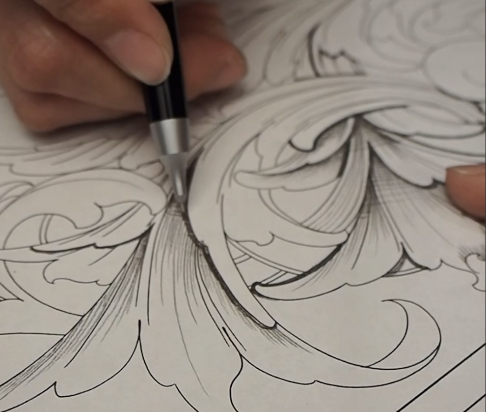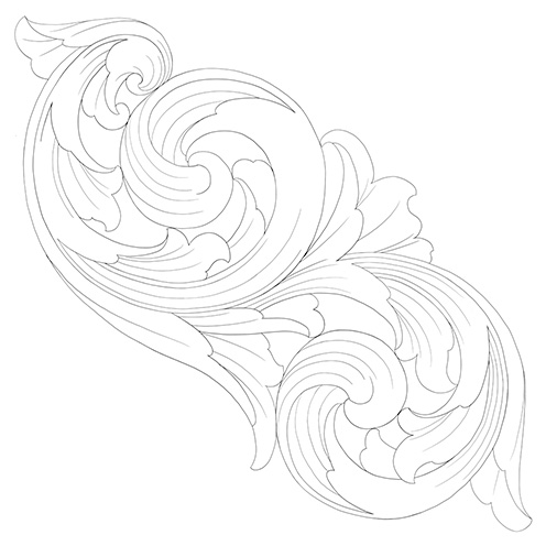 スクロールは、洋彫りにおいて「装飾」ではなく、作品の品格を決める骨格と呼ばれる技法です。