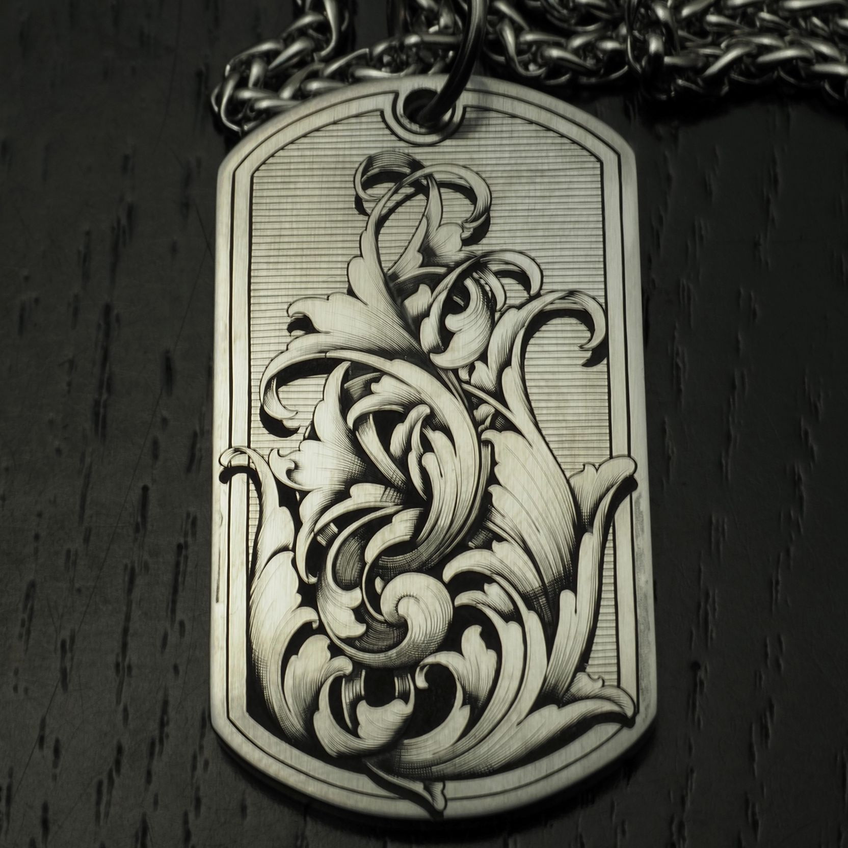 ステンレスのドッグタグを題材に、プロがデザインしたスクロールを五日間で彫り上げる短期講座です。